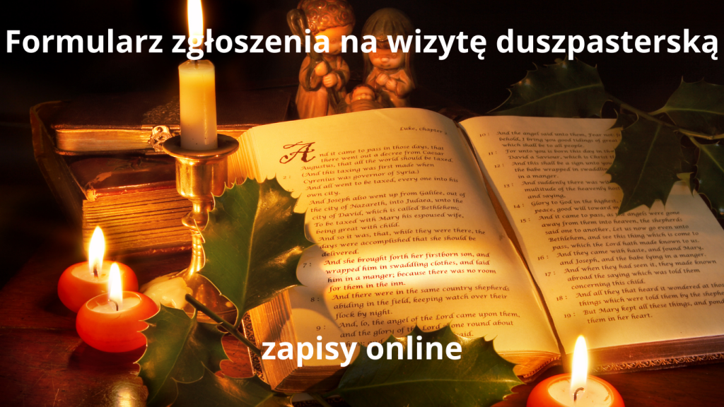 Informujemy, że istnieje możliwość zgłoszenia swojej rodziny na wizytę duszpasterską (tzw. kolędę) poprzez formularz internetowy. Zachęcamy do skorzystania z tej wygodnej formy rejestracji – pozwoli to na sprawną organizację odwiedzin duszpasterskich w Państwa domach.